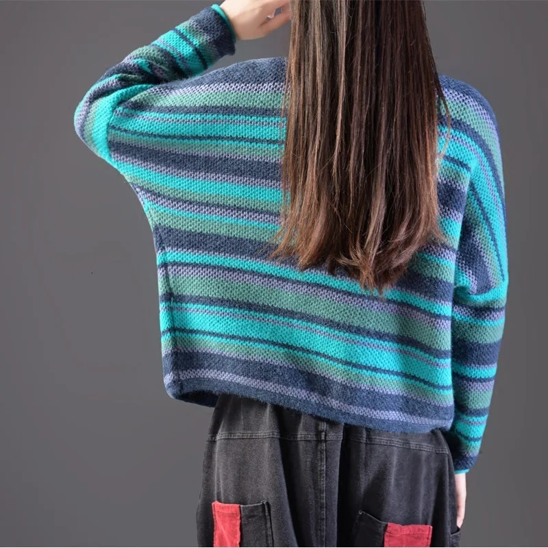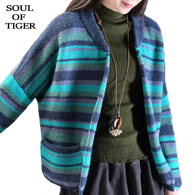 Big Sale SOUL OF TIGER 2019 Winter Warm Ladies Clothing Korean Fashion Jumpers Womens Striped Sweaters Casua