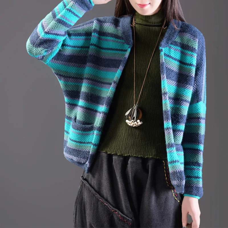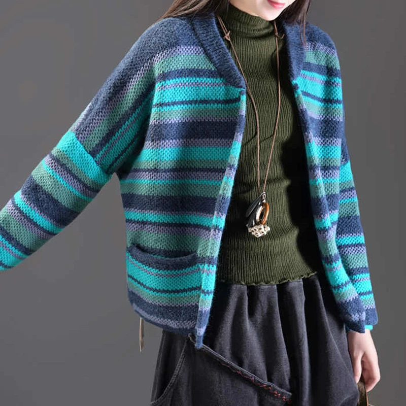 Hot Offer SOUL OF TIGER 2019 Winter Warm Ladies Clothing Korean Fashion Jumpers Womens Striped Sweaters Casua