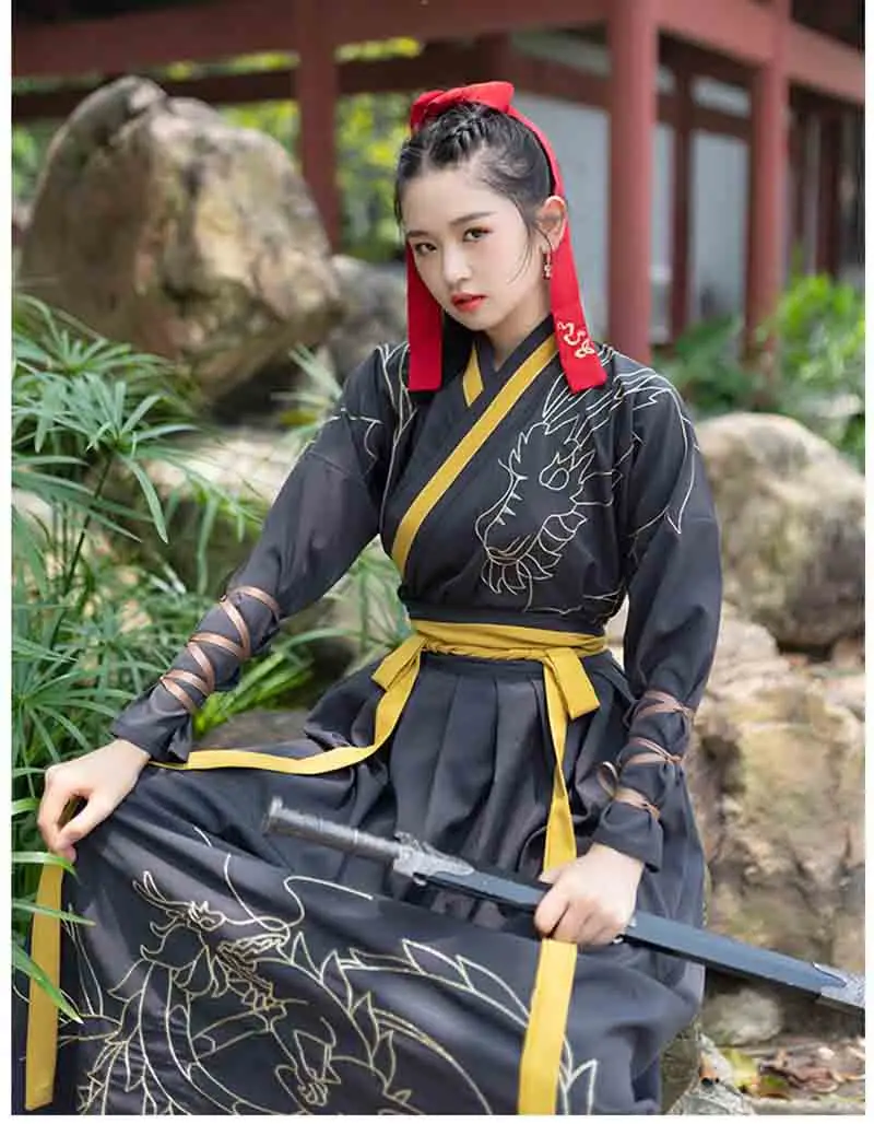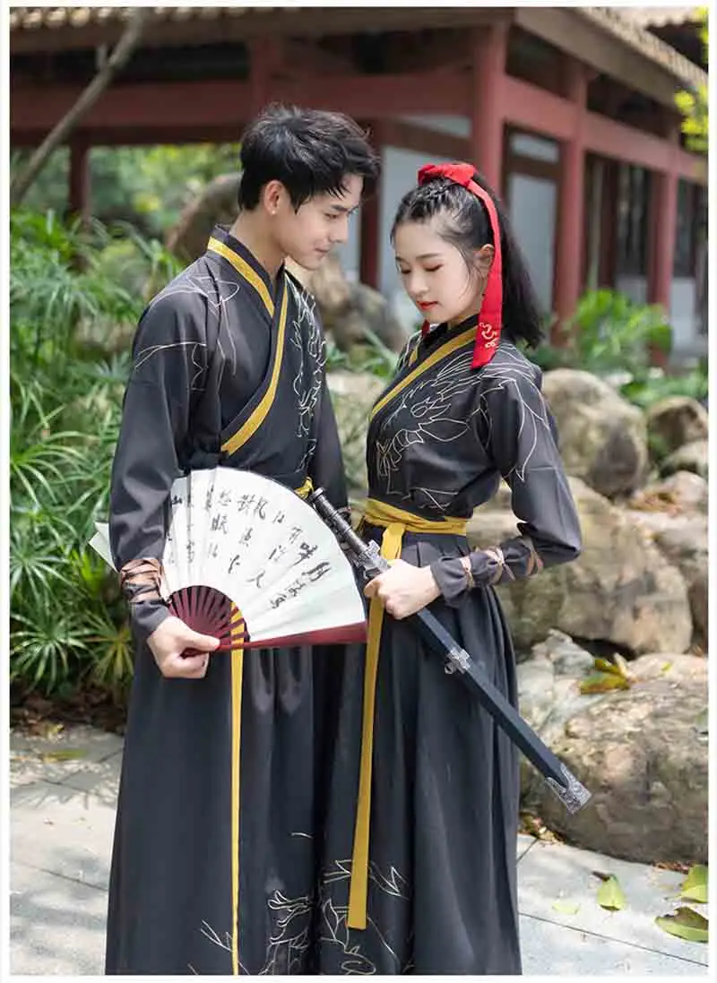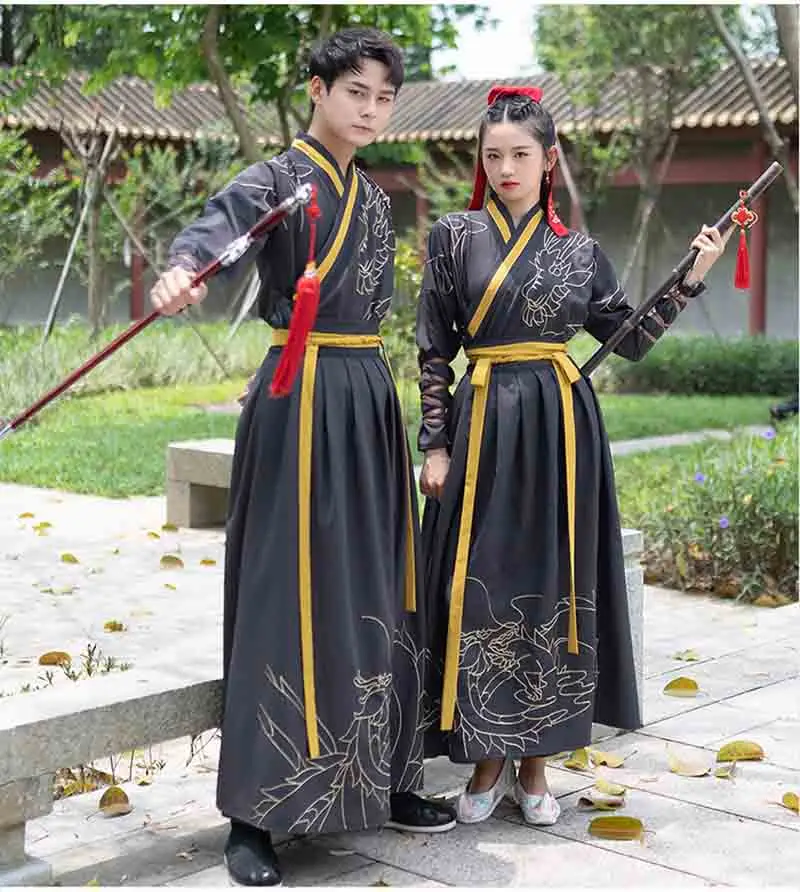 Best Promo Large Size 4XL Men/ Women Hanfu Black Ancient Chinese Traditional Clothing Fantasia Halloween Costu